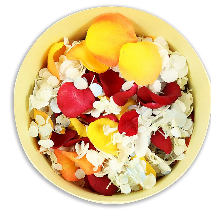 Immerse yourself in the beauty of our Luminous Petal Symphony, where each bloom is a note in a harmonious composition of nature. This captivating bouquet features a curated mix of hydrangea, rose, and chrysanthemum petals, exuding vibrancy through its rich and varied color palette.